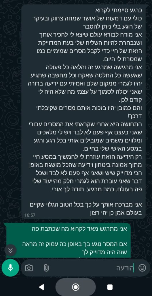 צפו בי, שמעו אותי, התחברו – וידעו שזה זה. לא בזכות שיווק, אלא בזכות אמת פשוטה שעוברת ממני אליהם.